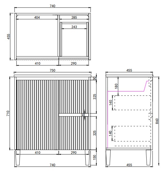 Crete Modern Free-Standing, Right-hand drawers Size:740*455*860mm Color: Matte Black