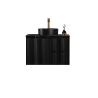 Crete Modern Fluted Wall Hung Vanity PVC Cabinet, Right Hand Drawers Size:740*455*480mm Color: Matte Black