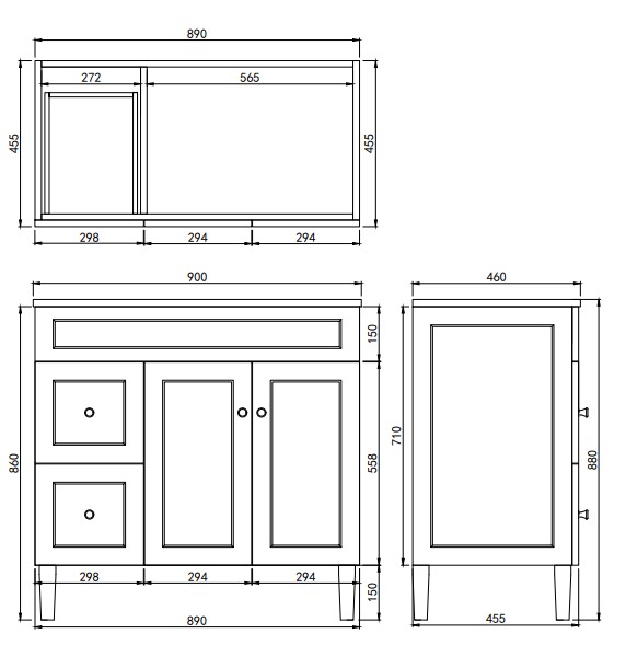 Harold Federation Free Standing PVC Cabinet Left Hand Drawer. Brushed Nickel Handle in the box. Size:890*455*860mm Color: Matte Black