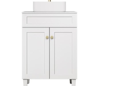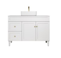 Harold Federation Free Standing PVC Cabinet, Left Hand Drawers. Matte Black Handle in the box. Size:1190*455*860mm Color: Matte White