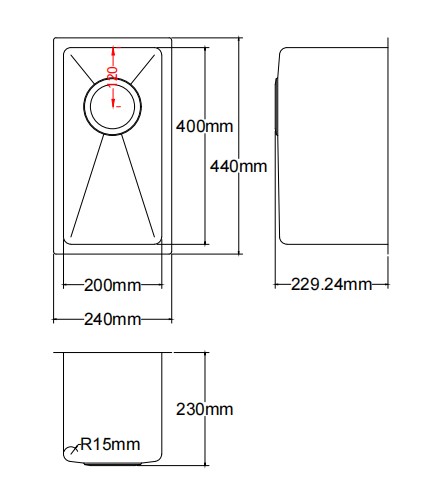 Bowl Size: 200x400x230mm